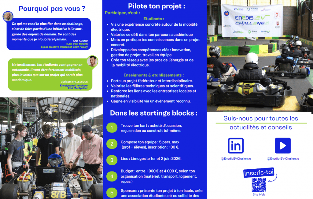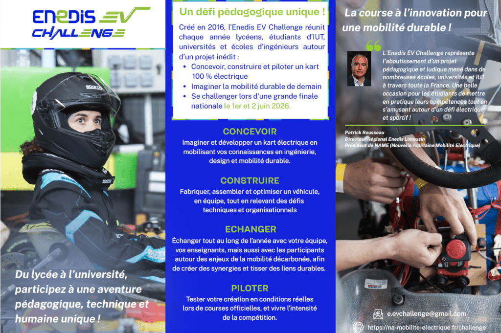 Créé en 2016, ce challenge pédagogique internationale de karts électriques se déroule sur la plus grande piste indoor de France à Limoges.
